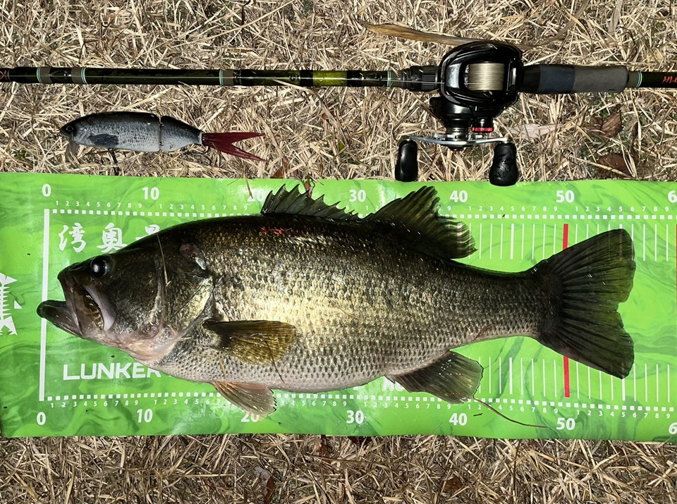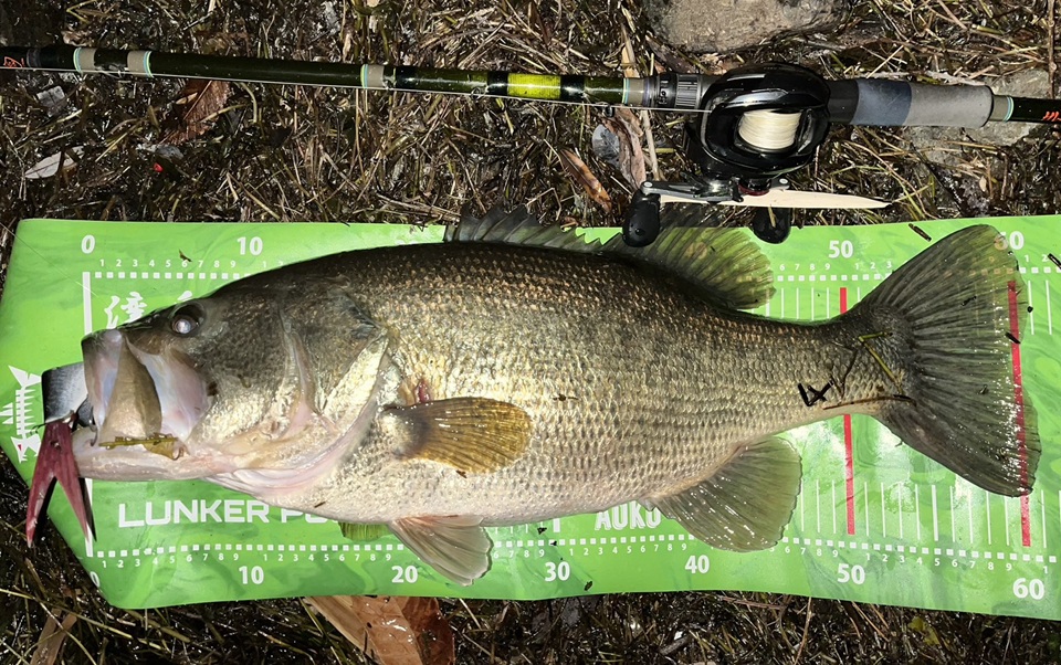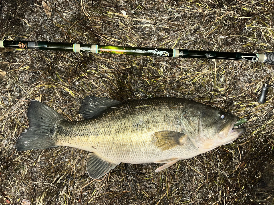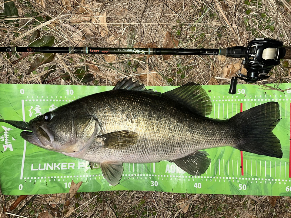 低水温期はハードルアーをボトムタッチさせすぎるとバイトが出にくいと感じているので、ロッド角度とリトリーブスピードを調整して、ボトムタッチは1〜2回になるように巻いていきます。