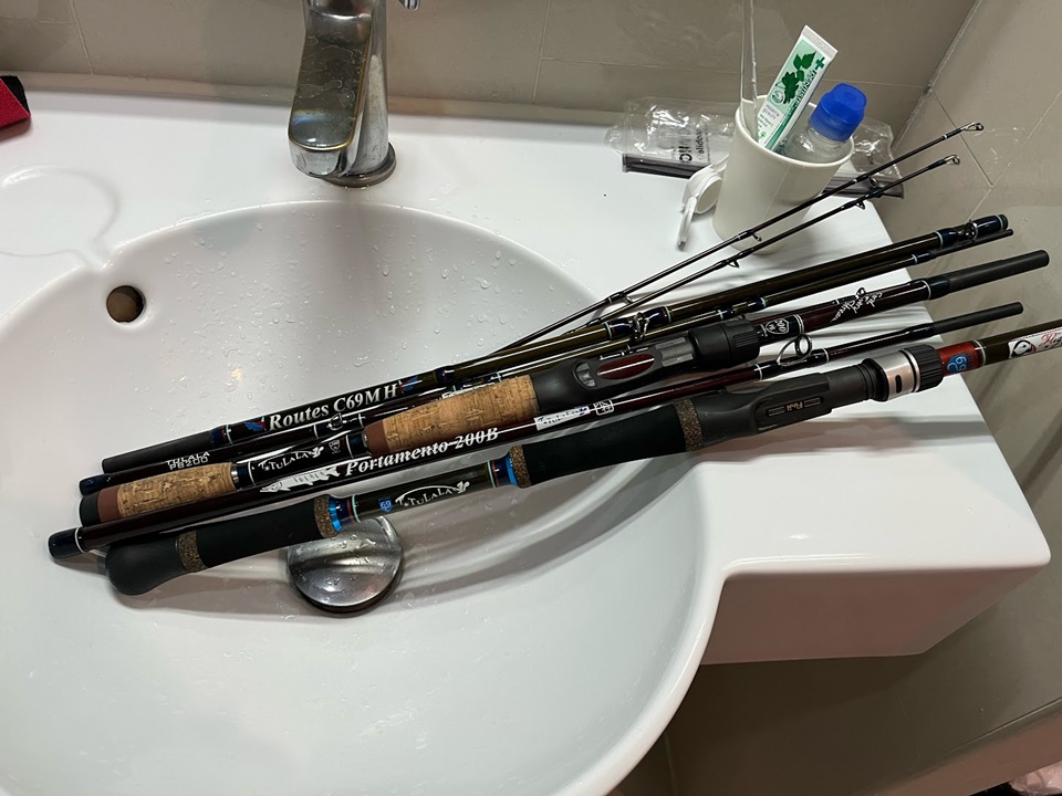 宿泊先のホテルで簡単に洗えるのもパックロッドの強みですね「持ち運びやすさ」と「本気で使える強度」の両立は、まさに海外遠征の強い味方でしたね。