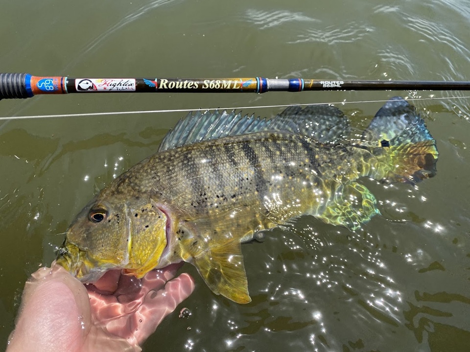 今回も複数のエリアでピーコックバスを狙っておりましたが、スピニングパックロッドのRoutesS68MLがピーコックバス釣りで活躍する場面がありましたので、ご紹介いたします。