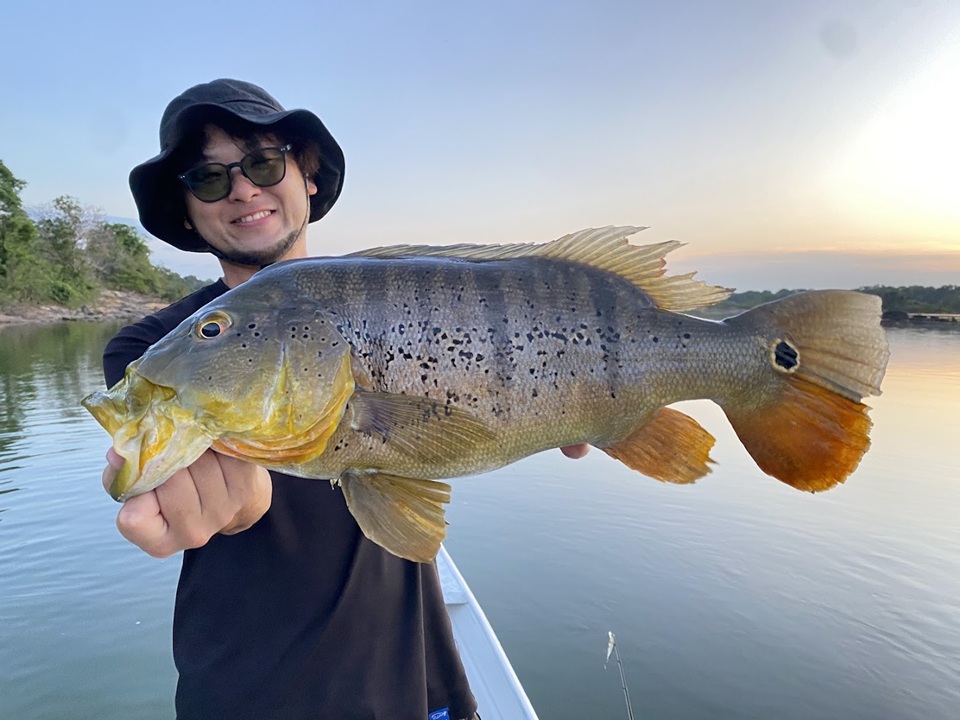 基本的に海外の釣り場では、太い糸をたくさん巻けるベイトキャスティングタックルをメイン使用します。しかし、今回訪れたシングー川では、前日に大雨が降って水温低下で著しく活性が下がった時に、スピニングロッドのRoutesS68MLが大活躍しました。