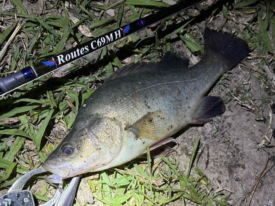 今回は15gのブレードルアーで釣りましたが、RoutesC69MHのやや柔らかいティップのお陰で難なく操作できました。今回のような釣りにはベストマッチなロッドですね!