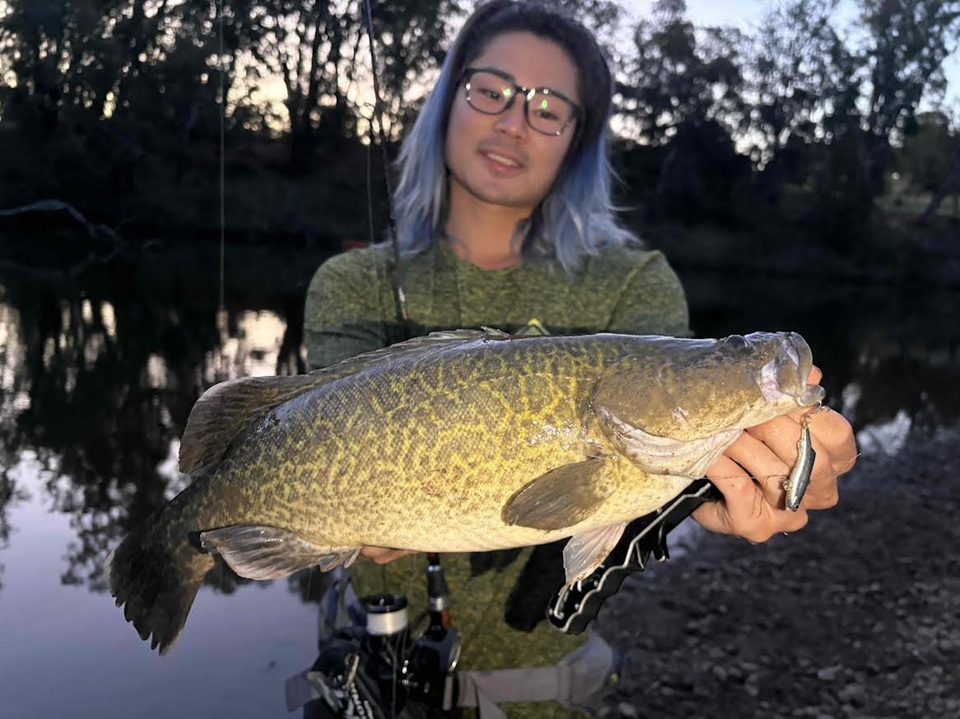小さくてもマーレーコッド特有の大きな尾鰭でとても引きました!