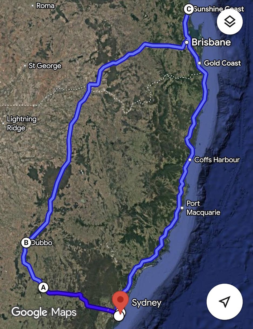 今回のロードトリップはシドニー→Dubbo(内陸部)→SunshineCoast→Brisbane→Gold Coast→Byron Bay→Port Macquarie→シドニーへ戻るという、総走行距離4200kmの大移動!