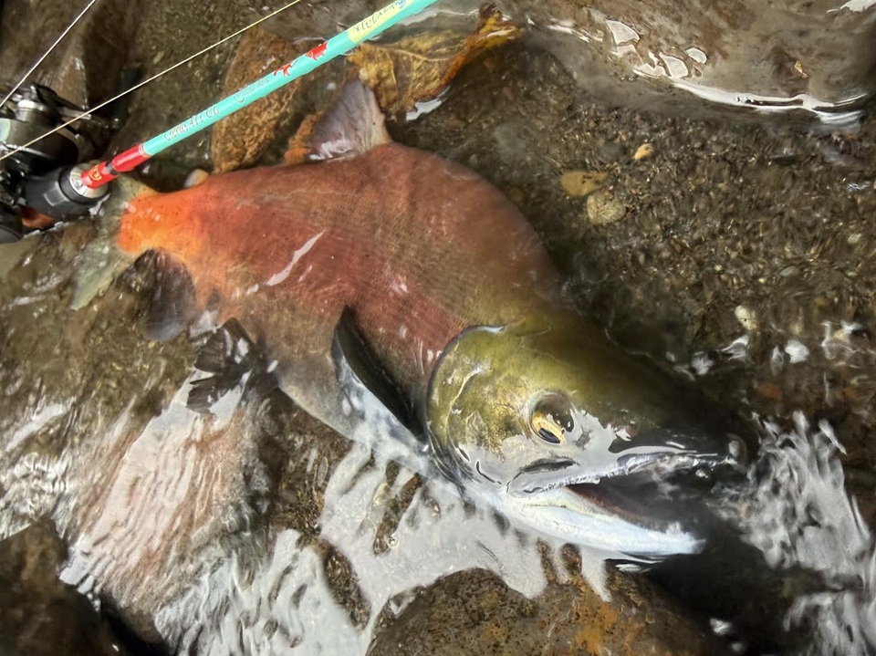 これぞヒメマス。と言わんばかりの完璧なセッパリ。銀色の体色だった頃からは想像もできない真紅の体色。鼻が曲がり、牙も発達し固くなった厳つい顔。美しく、かっこいい。